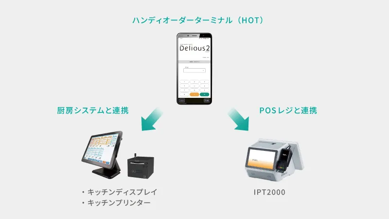 さらに、テーブルトップオーダーやモバイルオーダーと一元管理することで、店舗全体のオペレーションを最適化します。