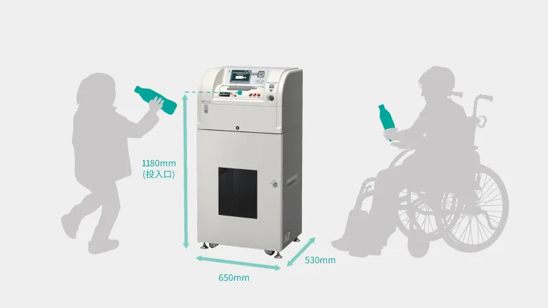 さらにオプションの「リサイクル見える化モニター」で、回収量やCO₂削減量を数値化。店頭やWebサイトで共有することで、利用者の参加意欲を高めます。