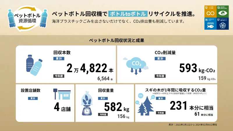 「きれいなボトルだけ」を回収対象とすることで、高品質なリサイクル資源を確保し、資源循環の“入口”として貢献します。