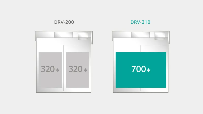 - DRV-210:一括700本収容、交換回数を最小化