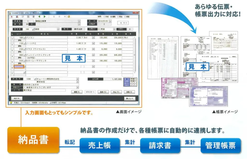 伝票の入力が単純・明快になり、どなたが操作しても正確に美しく伝票が発行できます。