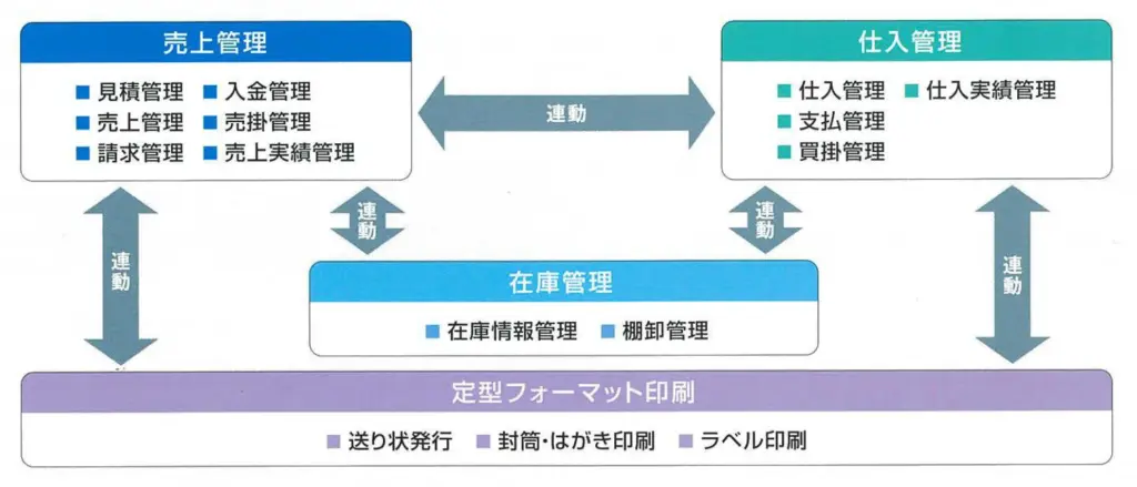 見積から入金、仕入から支払い、在庫から棚卸まで全てが自動連携。売上データが即座に在庫に反映され、適切な仕入タイミングを逃しません。さらに送り状・封筒・ラベル印刷も定型フォーマットで瞬時に出力。手作業によるミスとムダを徹底排除し、スマートな経営を実現します。